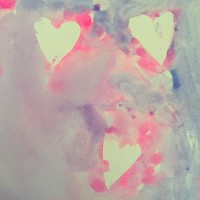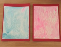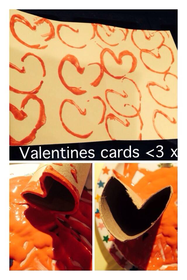 5. Another alternative is  to cut out heart shapes out of card, show your child how to stick them to the card with a little blu-tac and dap over the top. When the paint is dry lift off the hearts and a beautiful pattern will be left behind.