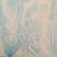 3. Once they’ve drawn their hearts encourage your child to paint over the top of their heart and see what happens! Because the wax repels the water the heart shapes will re-appear