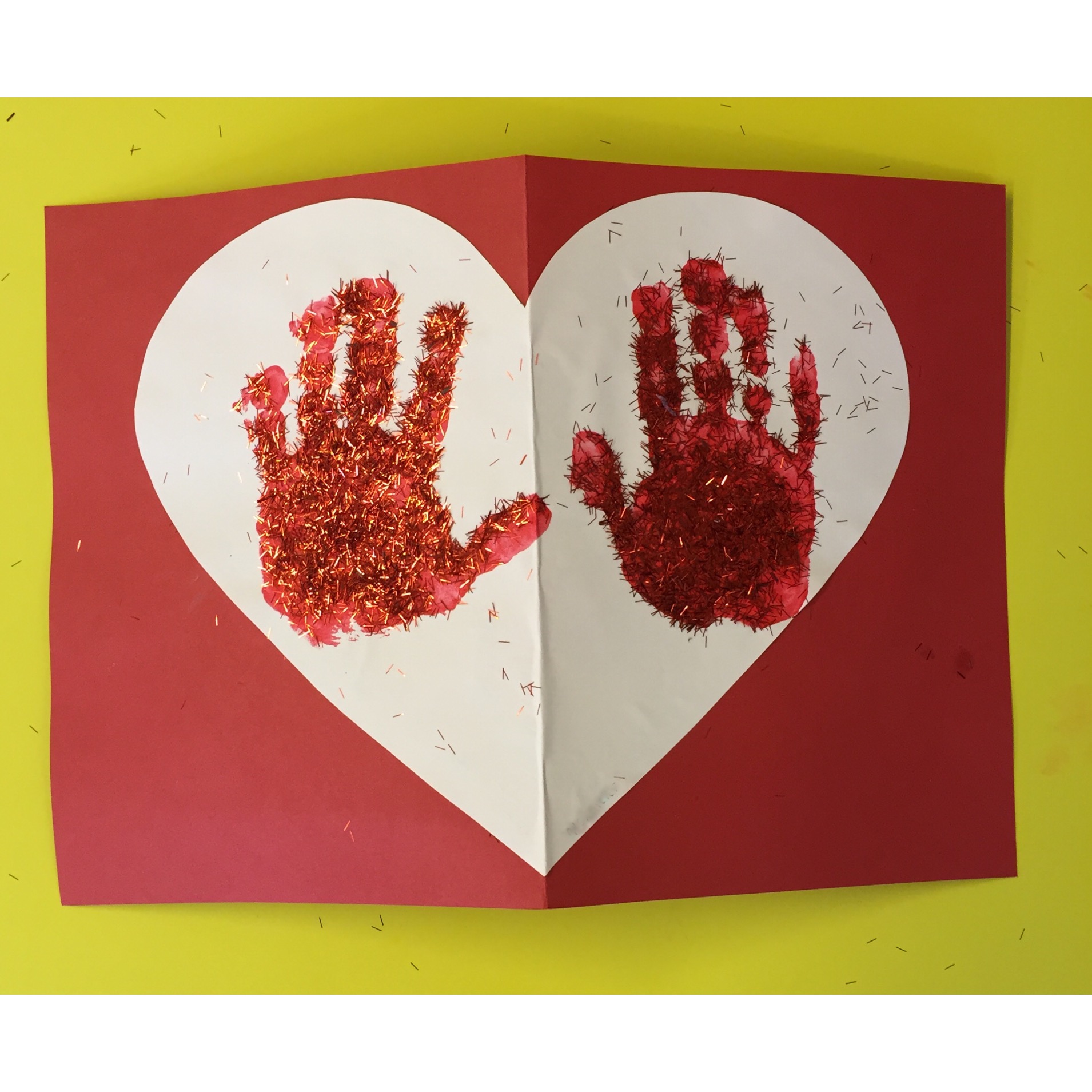 4. Spinkle glitter or sparkles over their hand prints and shake off any excess
