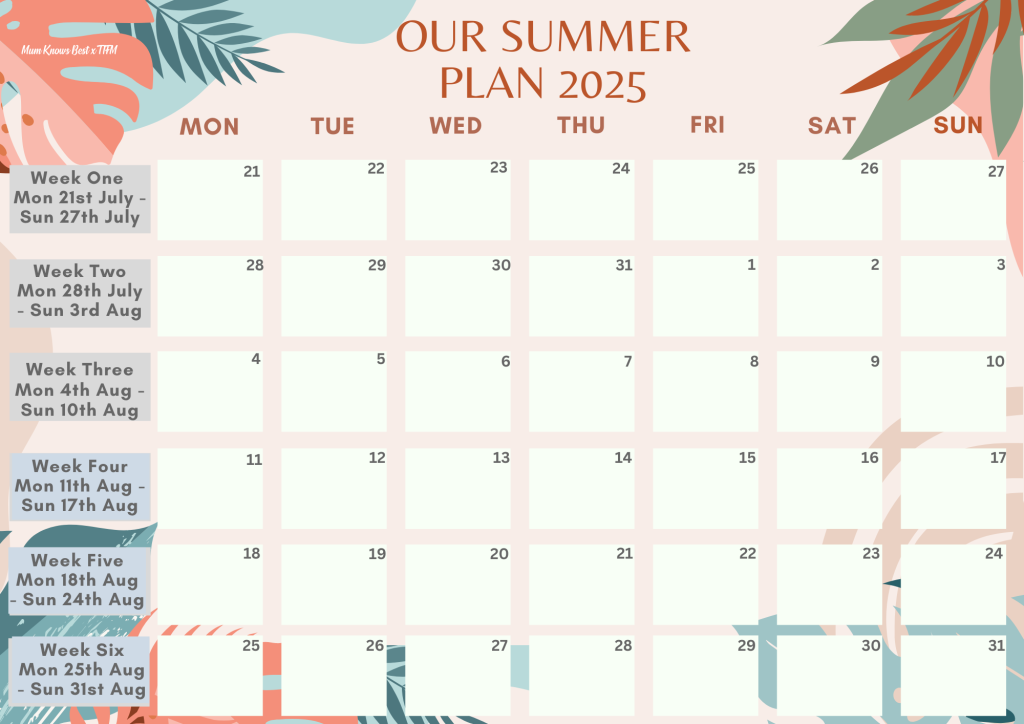 The Summer holidays are almost upon us and in an effort to help lighten the load and to stop the “What are we doing today” questions. I’ve created some free downloadable Summer Holiday Planners. The planners have all six weeks ready to map out!