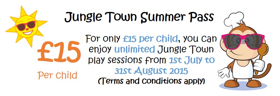 Jungle Town LogoJungle Town, Stratford Upon Avon is offering Summer Passes which give unlimited play sessions in July and August for only £15 per child!  Buy your Summer Pass in Jungle Town or over the phone.