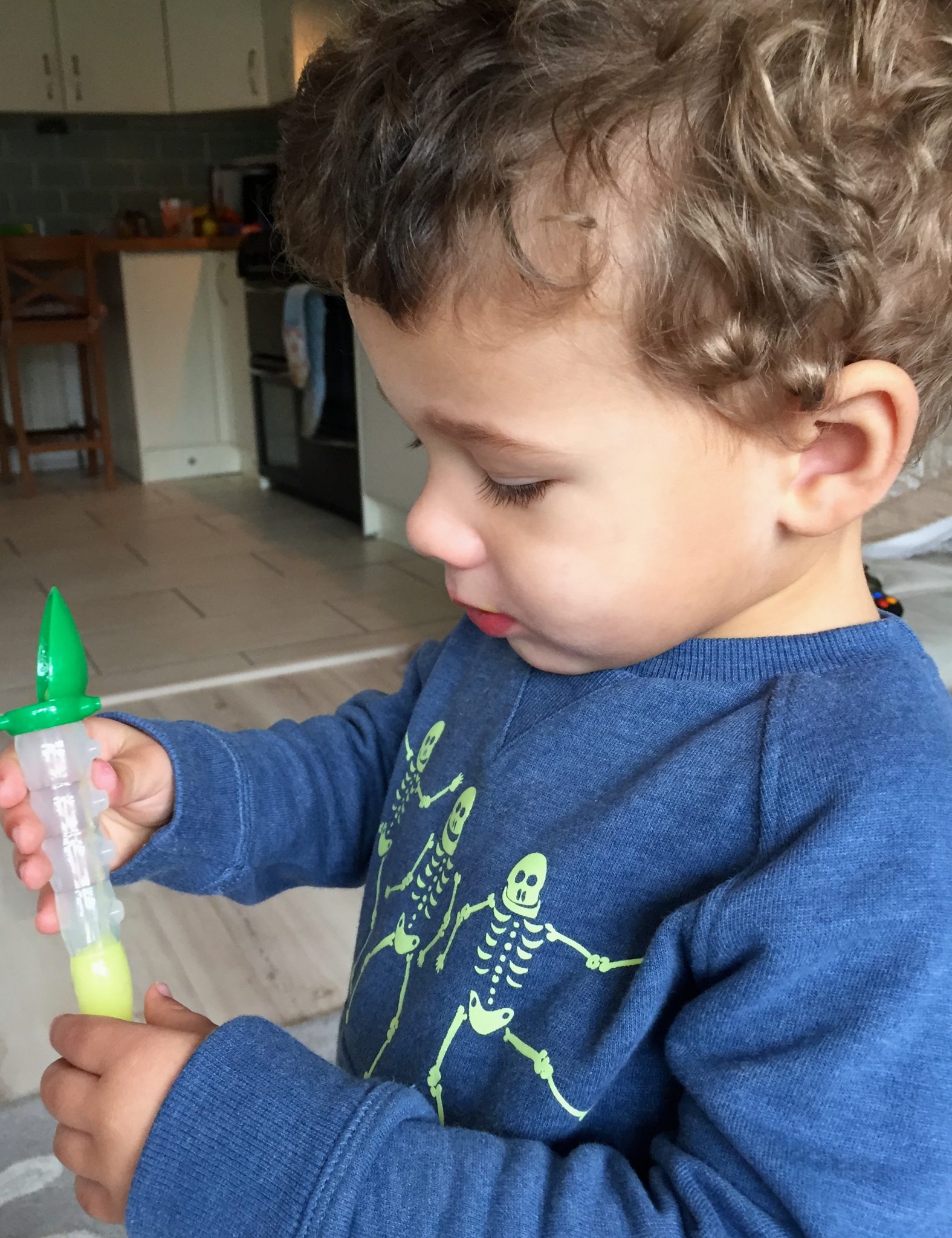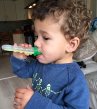 We got home with the children’s favorite ‘Banana Medicine’ the end is in sight! That is until, it comes to administering said medicine. I poured out the banana medicine onto the spoon, but our little man has other ideas. He wants to do it himself, fabulous. Straight down the top it goes. So I grab the nurofen syringe, again, I’m not allowed to help, but its too tricky for him to hold and push it in at the same time, time for the intervention again which doesn’t go down well. And then it suddenly came to me! ..