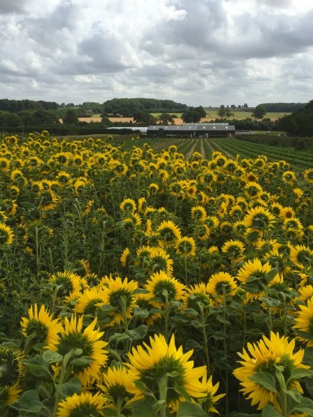 We spent about an hour exploring the fruit and playing down the hedgerows of the raspberries and then after much hilarity trying to pull rhubarb and sunflowers we headed inside the farm shop to pay for our brimming baskets.