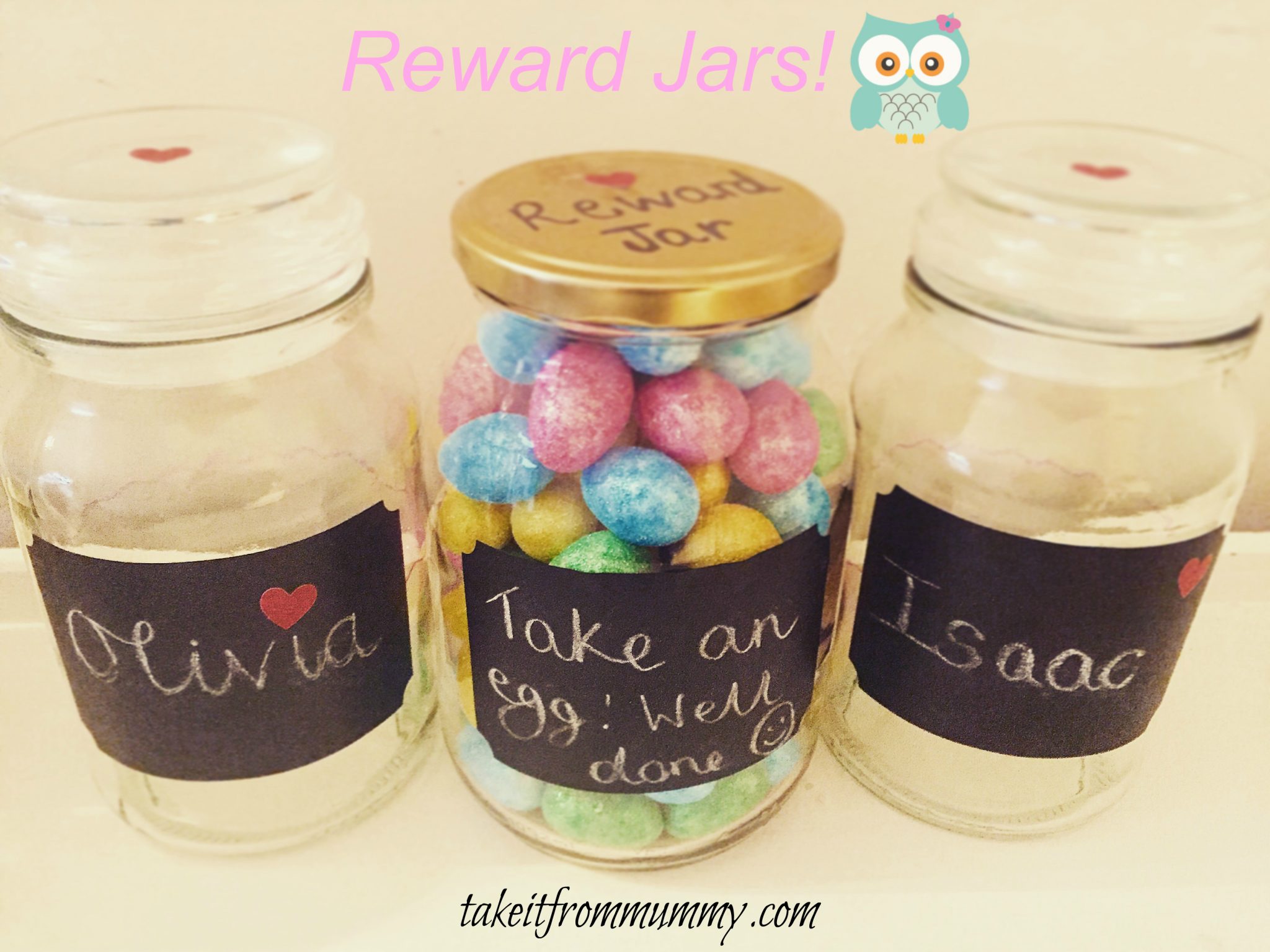 Half way up the jar I have drawn a line, once they fill their jar up to the line, they will get a treat. We will decide together what that treat will be for each of them, maybe a packet of sweets, a magazine, 15 minutes iPad time, something of low cost but high value to them. I’ve decided to do that to keep them interested and remind them that if they keep up good behaviour they will be rewarded.