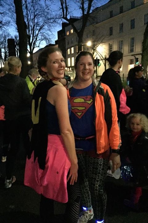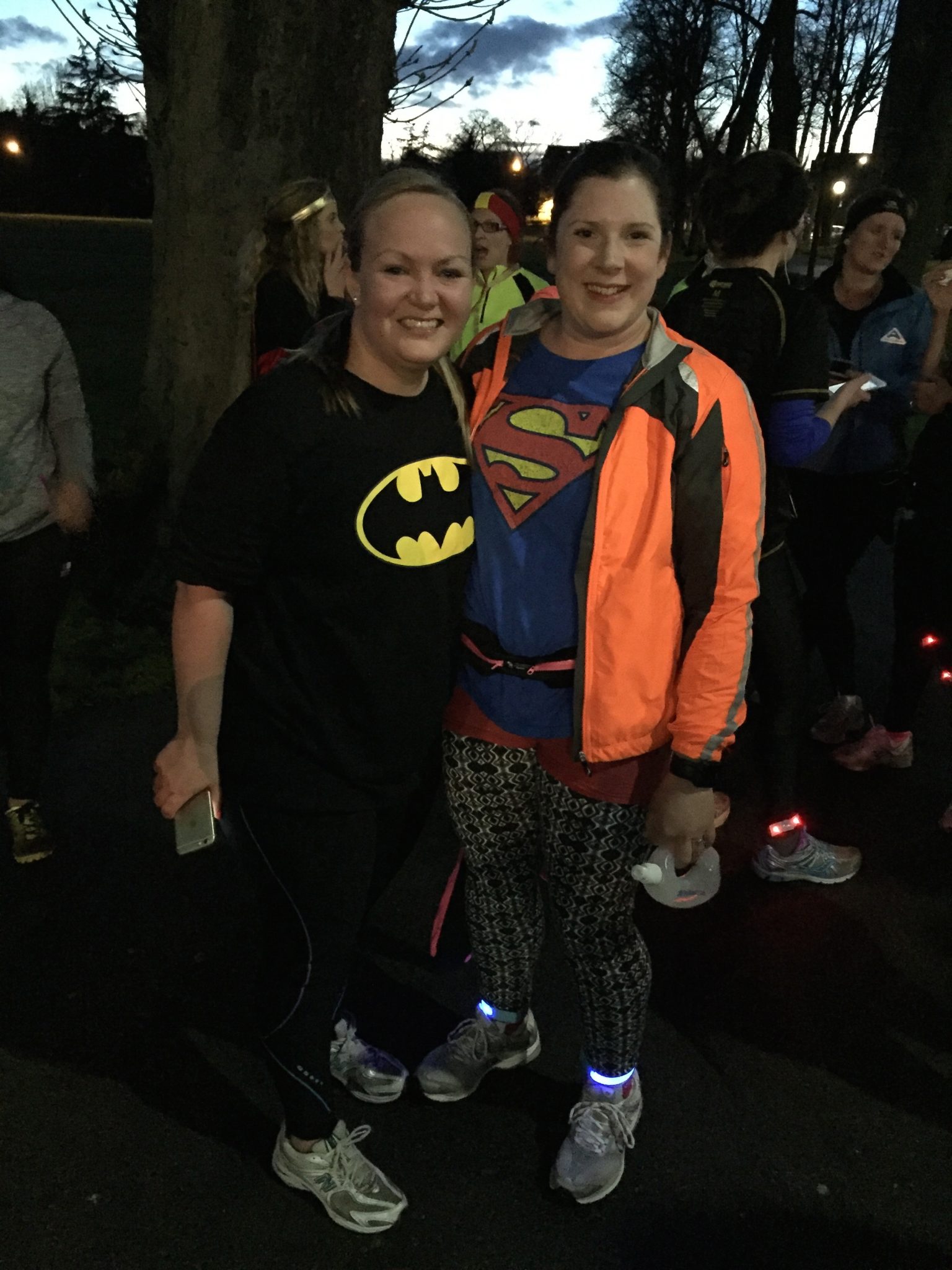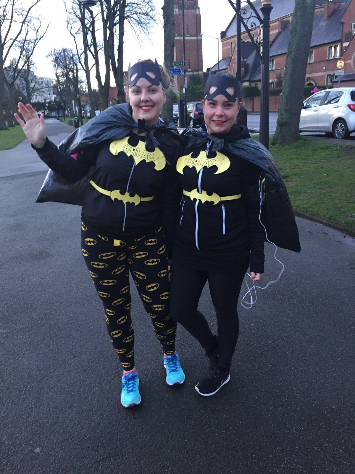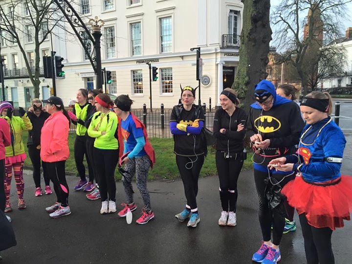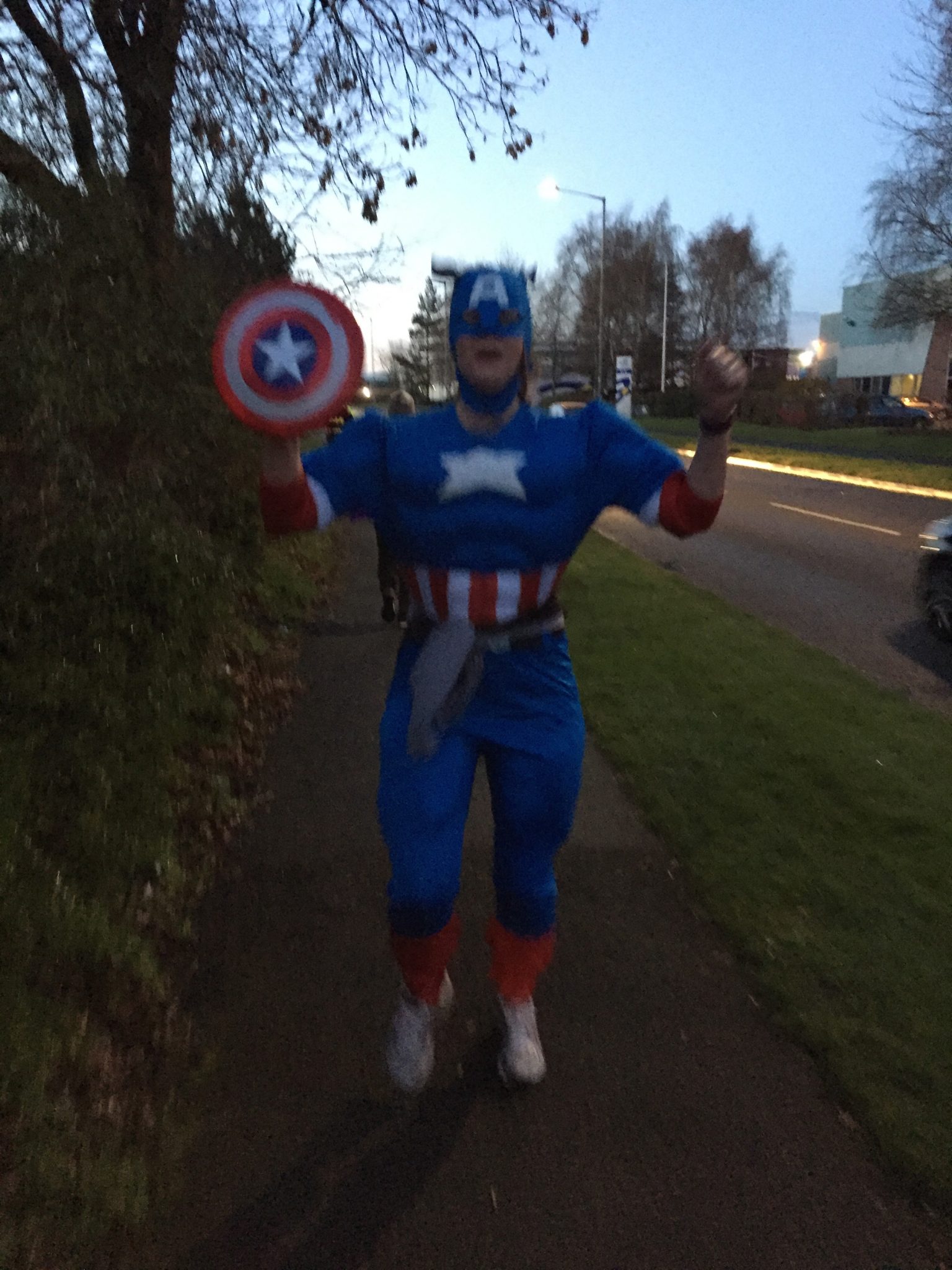 The team of ladies from the group dressed up as superheroes and set upon an ‘out and back’ challenge where they were to run out as far as possible for 20 minutes and then turn around wherever they were and try to make it back to the start in 19 minutes! At the end of the run each team members’ total distance was recorded and added together to make a combined distance travelled.