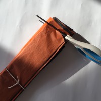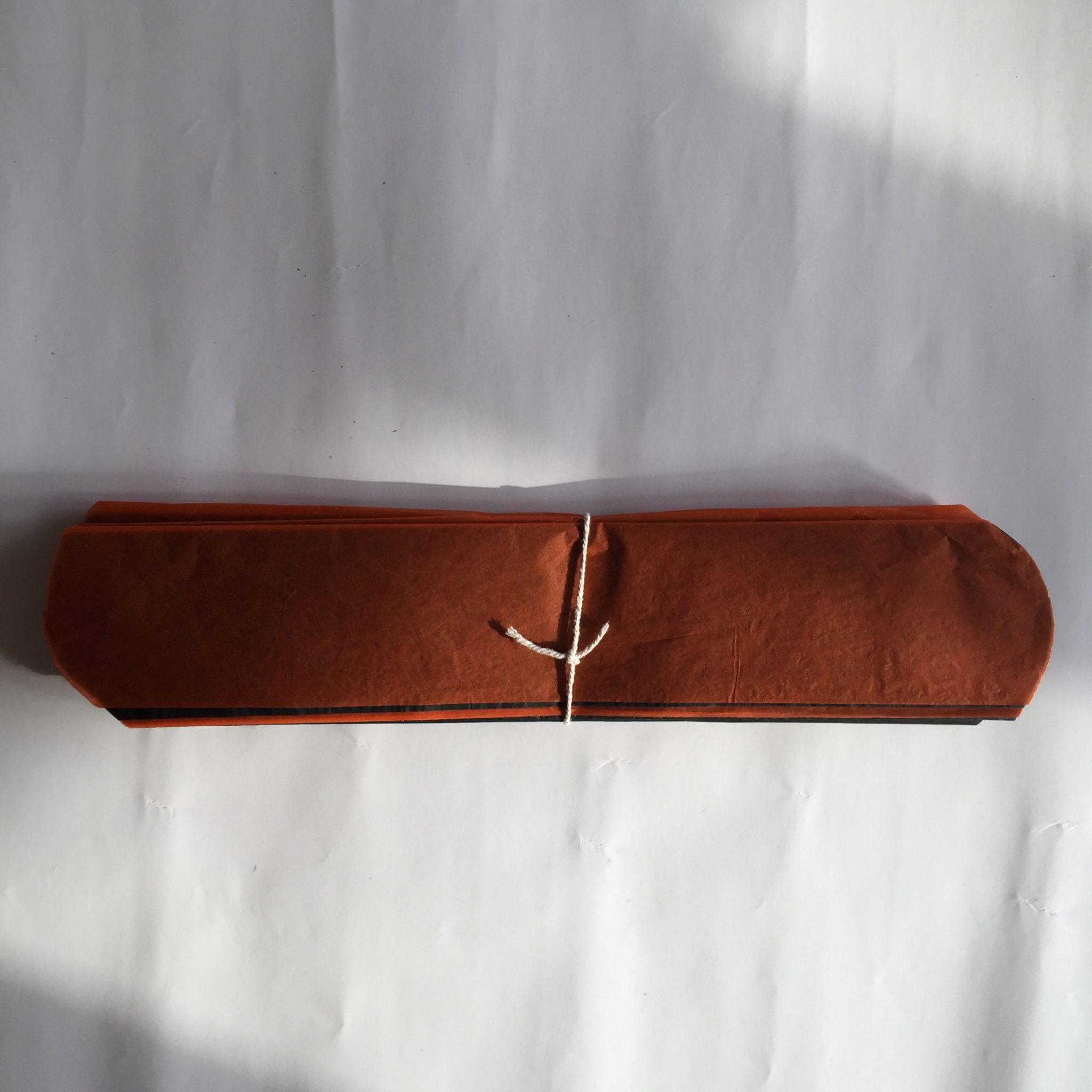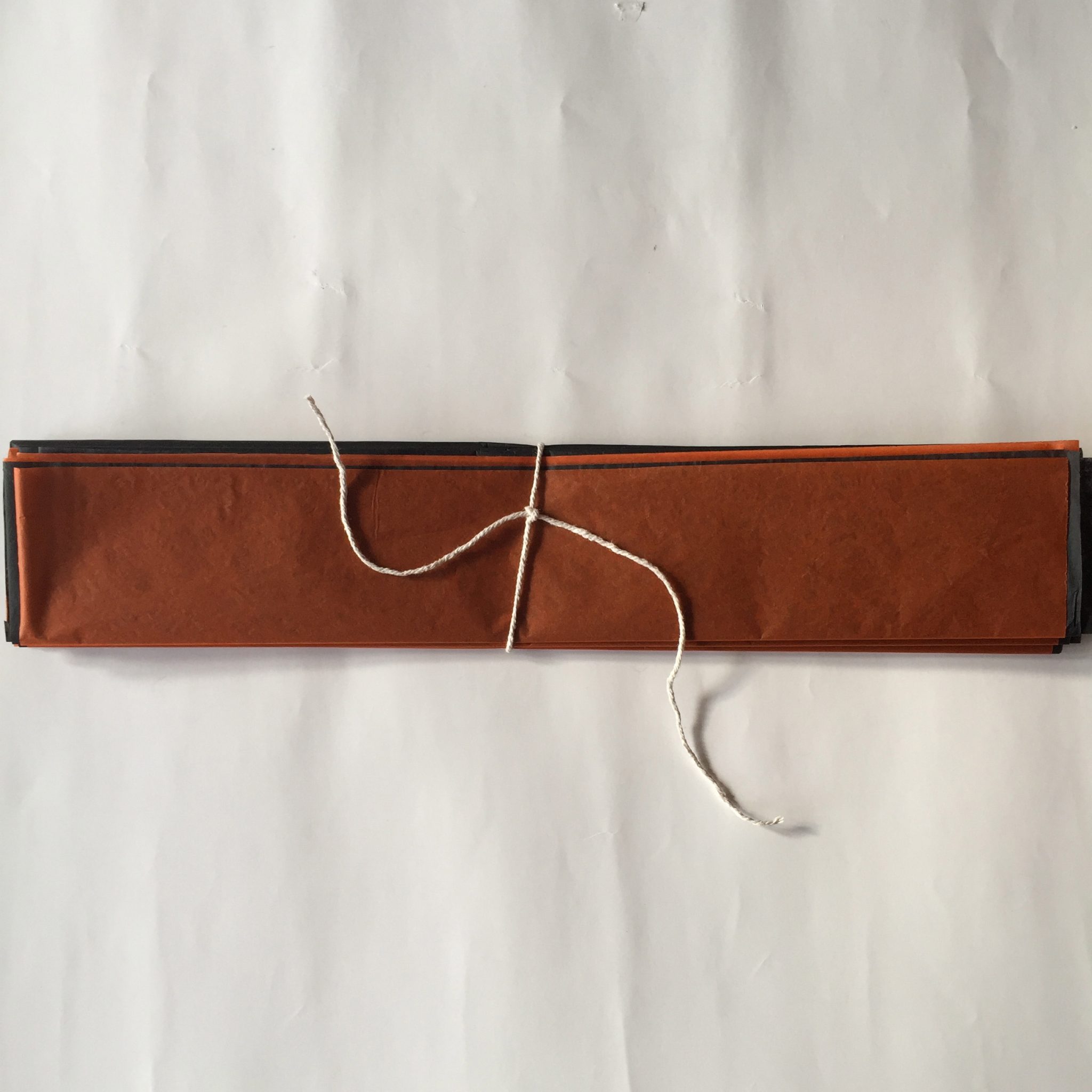 3. Once all the paper is folded, take a piece of string and tie it round the middle of the folded paper. Tie it fairly tight but not so tight it creases the paper.
