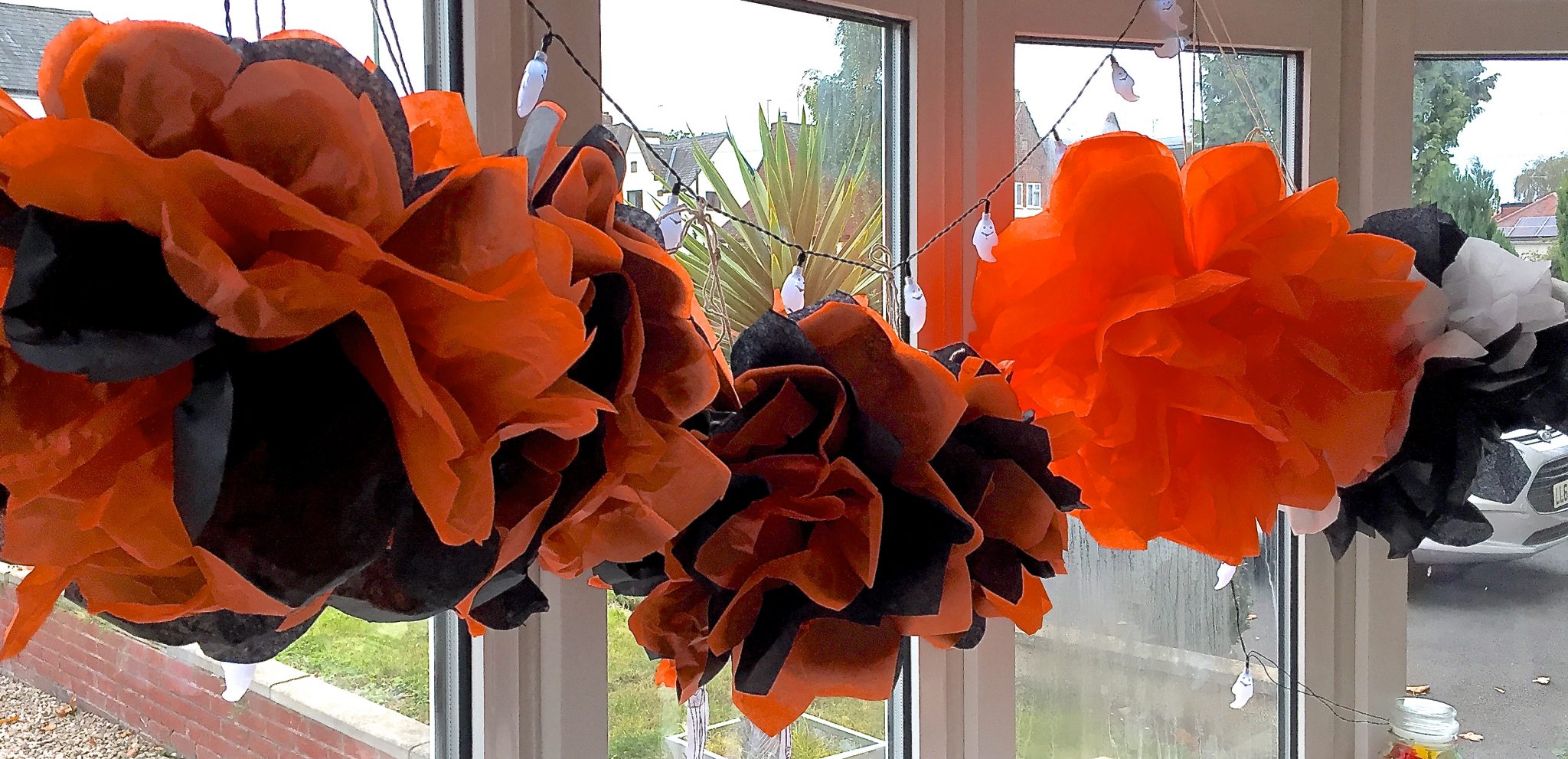 Here’s my halloween window complete with Ghost fairy lights which we got from Tiger.