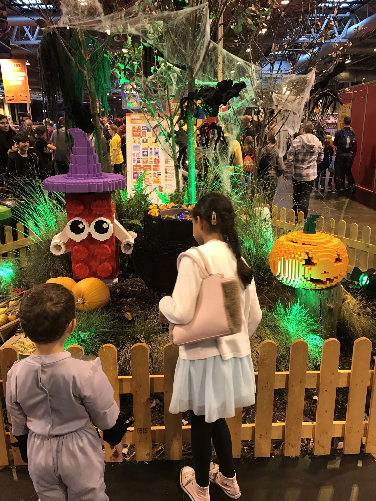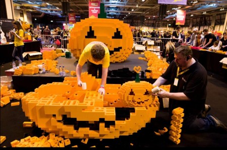 We were greeted with this fabulous Halloween inspired build, a theme which resonated throughout the event, including an area where visitors built small rectangular structures to create a giant pumpkin!