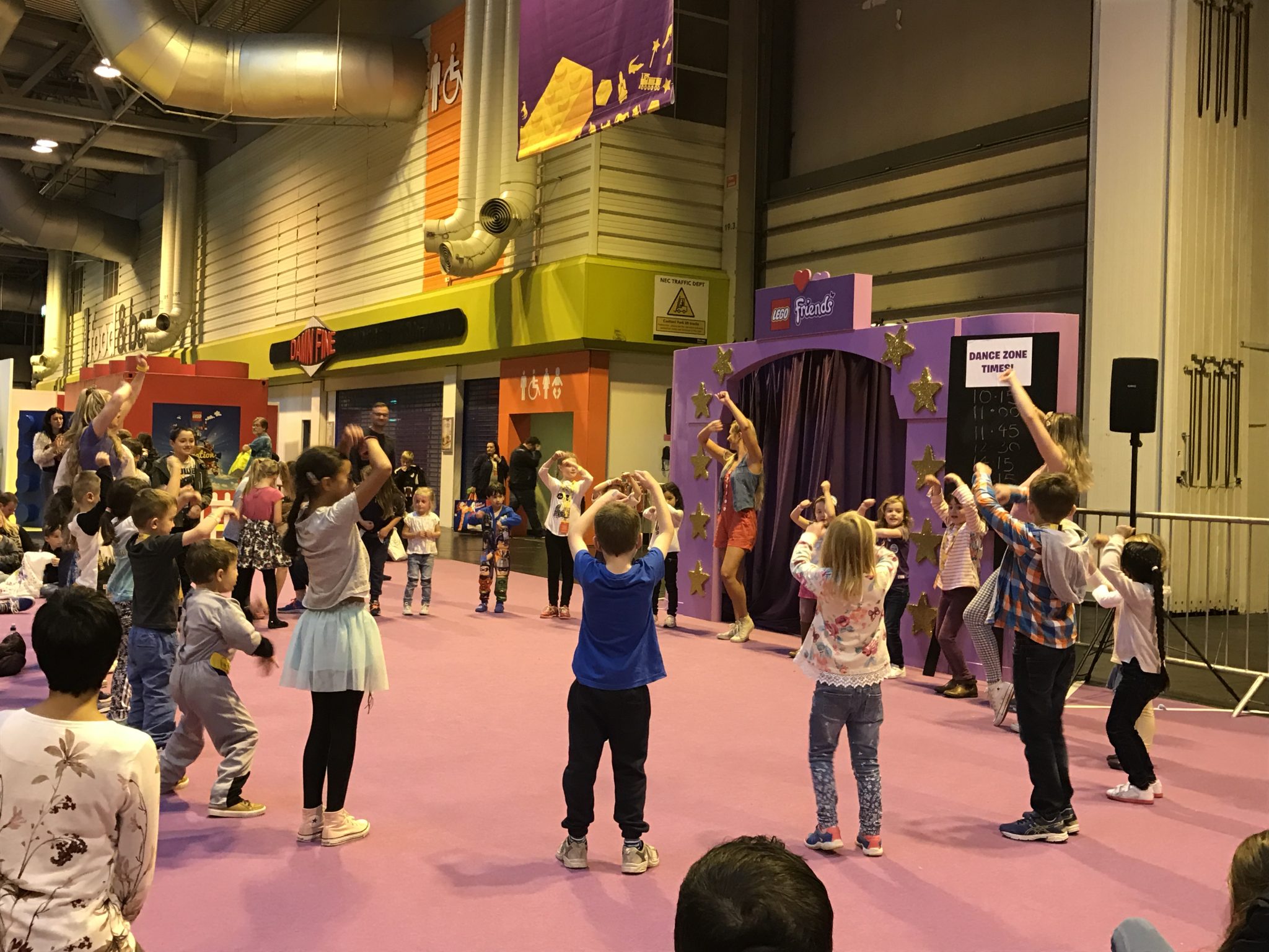 My daughter wanted to head straight to the nearby Lego Friends area, she loved this last year and again it didn’t disappoint, with lots of areas full of ‘friends’ lego to build with, seating for the adults and once again the fabulous dancers who actively encouraged the children to make up a routine with them. If you look closely at the pics you can just about make out my little batman getting involved which was a surprise even to me!!