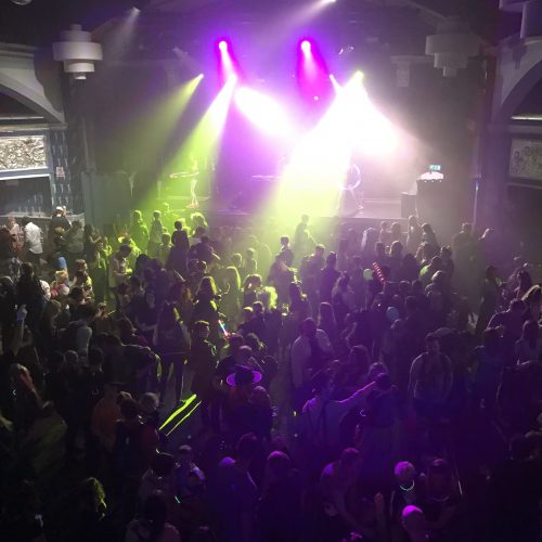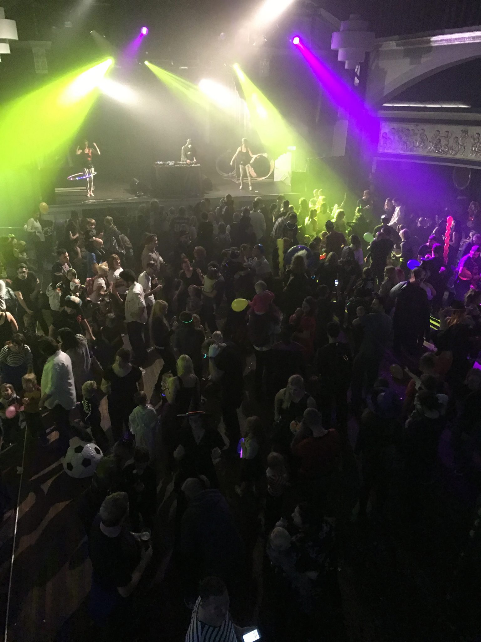 When we arrived at The Assembly Rooms in Leamington there was a tiny queue which moved really quickly and we got our free glow sticks and in we went!