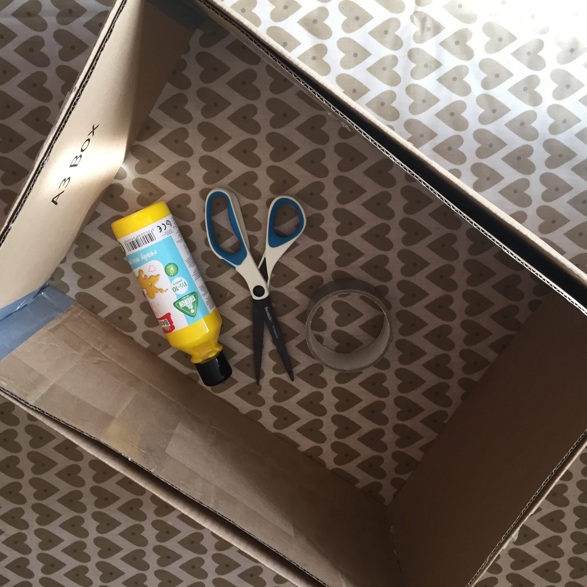 - Minimum two (preferably three) cardboard boxes, one the right size for your child and one to cut up to make the arm and scoop.