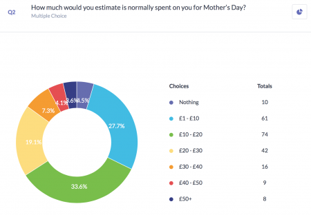Our Mum’s estimate that between £1- £20 is spent on them on average, the majority replying between £10 – £20.