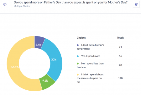 54.5% of Mums think that they spend as much on Father’s day as is spent on them for Mother’s day but 30% say they spend more.