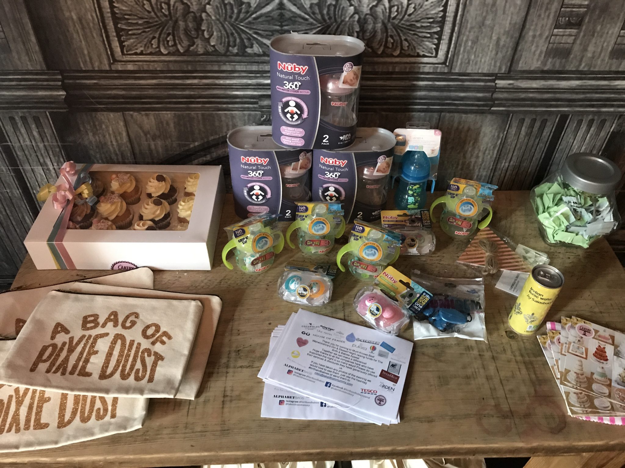 We held a raffle, which was hugely popular thanks to the generosity of many local business who kindly donated prizes. Thanks to Elan Spa @ Mallory Court, Fabulous, Warwick Castle, Gü Puds, Love For The Mama, Arden House, Bread & Co, Alphabet Bags, Clinique, Ceri Jam, The Cakery, Saks Hair & Beauty Kenilworth, Cassie Leedham Photography, Church Farm Brewery and The Hair and Beauty Gallery. A small selection of the many prizes are photographed below: