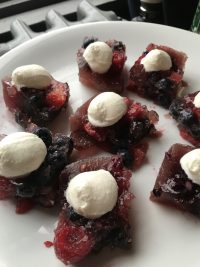 I was having so much fun I barely took any photos, and that really speaks volumes! But there were some gorgeous desserts, White Chocolate & Raspberry Cheesecake (I didn’t get a picture in time! Someone send me a pic!), Summer-fruits Terrine with crème chantilly and Home made choux buns filled with a rich chocolate ganache and some beautiful macaroons. The Royal Pug had carefully created a ‘Gin-pairing’ menu to go alongside the desserts so our guests could choose their own gorgeous gin concoction to compliment their chosen desserts.