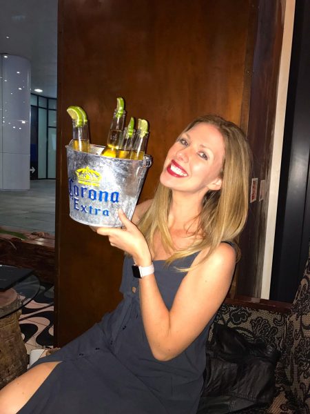 Following our boozy cocktails we thought we had better actually eat something to soak up the alcohol, so another Uber ride away we went back to The Mailbox and headed to Rodizio Rico. Rodizio Rico is a Brazillian Churrascaria (easy for you to say) – basically what that means is, people walking round your tables offering you freshly cooked meat from skewers, every grilled meat you can imagine from chicken wings, to sausages to steak. If your partner is 6ft 5 like mine and can eat enough meat for 40 people this is the place for you. There’s a salad bar and plenty of options for vegetarians too. AND they sell buckets of Corona (see the pic below.. have a ever been more happy?)