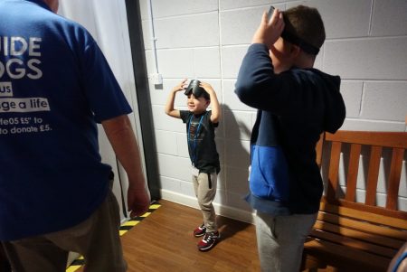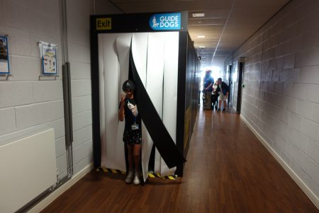 We then took the Sensory Tunnel experience to get a brief insight into living with sight loss, and learn how people with sight loss get about. The children were given a blindfold and encouraged to feel the walls and listen to the sounds inside the tunnel. They really enjoyed this experience, and the older two particularly took a lot from that hands on experience. We were also shown a specialist walking stick and the various harnesses and how they work.