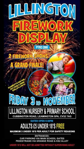 This year’s fireworks will take place at Bishops Tachbrook Meadow from 7pm.
