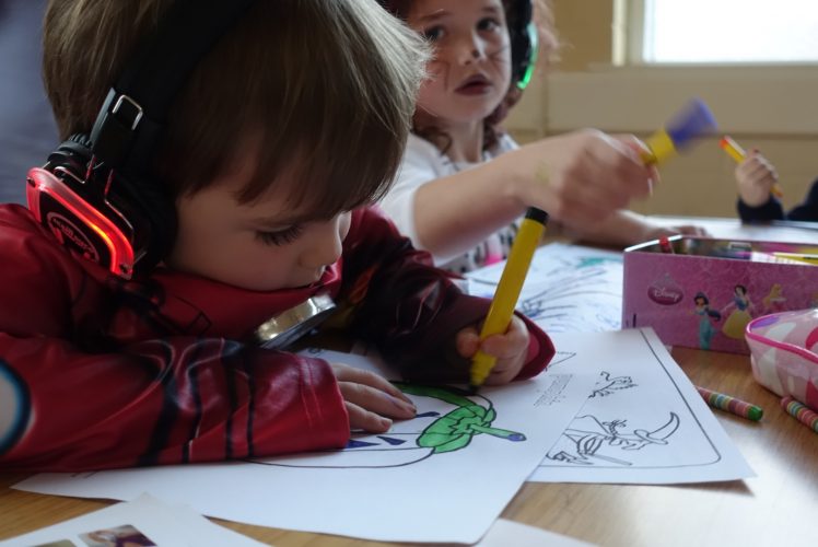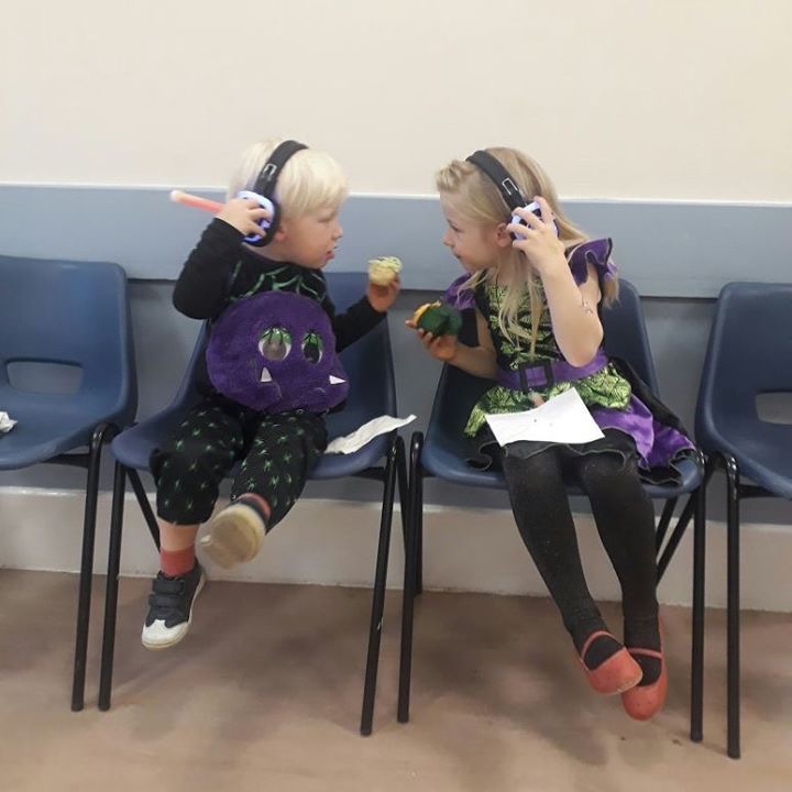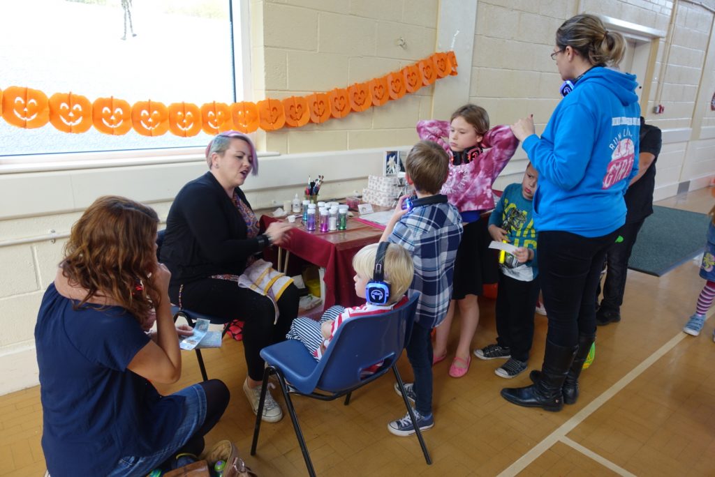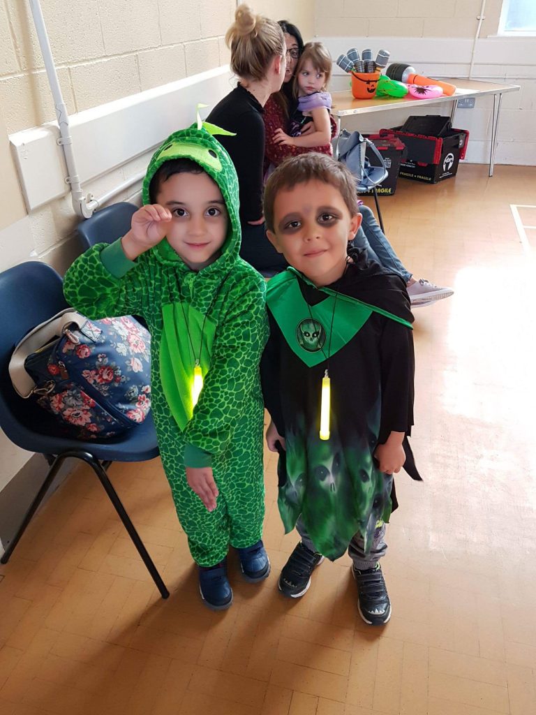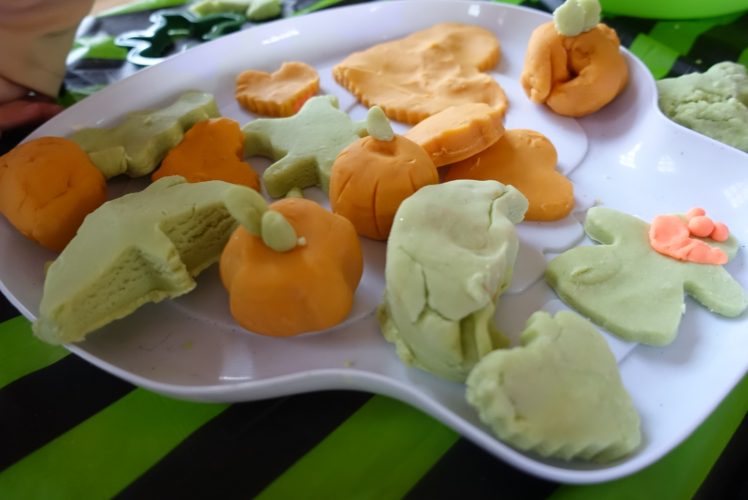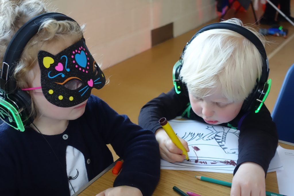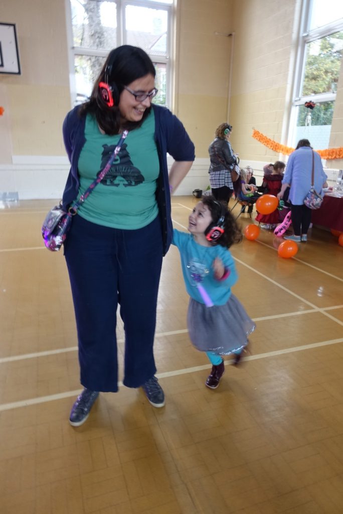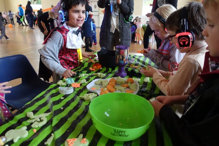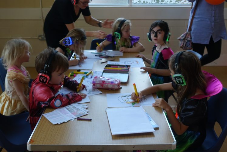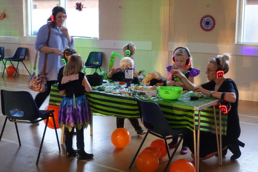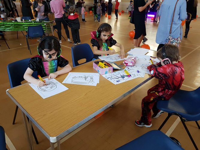 Our children are individuals and what works for one, doesn’t necessarily work for another. For some children walking into a room with loud music and lights is too overwhelming. I am always mindful of this when I plan events. I had some craft tables where I made some play dough and we had some pumpkin and bat making, sticking and some colouring too. I cannot tell you how much I love the images below because you can clearly see children enjoying quiet crafts while listening to their choice of music at their own volume, humming or singing way to the songs.