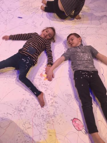Alexander and Evie were so excited after we were told to take our shoes and socks off and put our belongings to one side outside the studio.