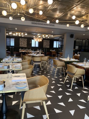 Today we were invited to try out their Sunday lunch menu in the beautiful bistro, (a term that conjures up images of rustic French spaces with the smell of french onion soup in the air and waiters with authentic accents.) You can see that this bistro is a little removed from the one in my minds’ eye! It’s a truly stunning space, which, I can only imagine is even more stunning in the summer when the large doors can be opened up, giving way to a beautiful courtyard area adorned with outdoor tables and trees draped with lights.