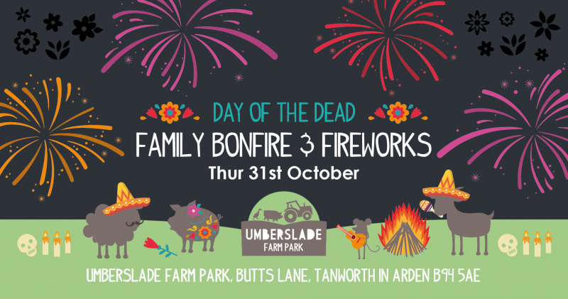 This year we are having a Bonfire Night with a twist at Umberslade! Our Day of the Dead Bonfire Party will be frightful delight for all of the family. Our Dia de los Muertos Skeletons and fire dancers will party the evening away with you at our Dead Famous Family Silent Disco and Live Mariachi band. Your Mini monsters will love creating their own spooky artistic creations in hands-on craft, or be entertained by some spooky storytelling. There’s a pumpkin trail across the farm and if you come in Fang-tastic Fancy dress you’ll have the chance to win a Family Farm Pass! All in addition to the traditional Umberslade Bonfire, fab Fireworks and Spooky Street Food and licensed Bar!